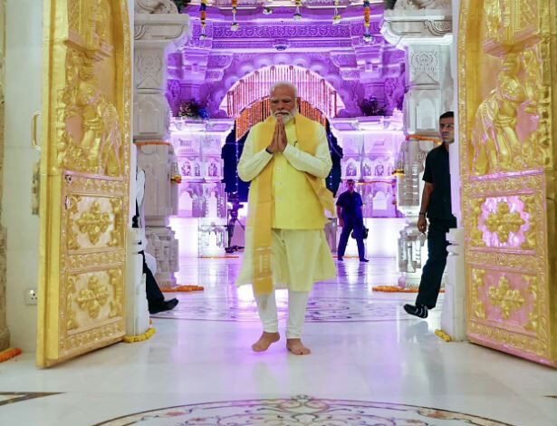 प्रधानमंत्री मोदी ने अयोध्या धाम में ध्वजारोहण से पहले किया रोड शो