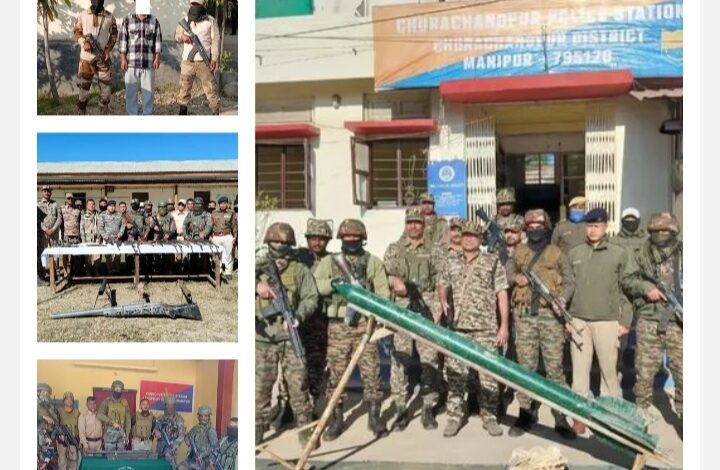 मणिपुर में सुरक्षा बलों ने तीन जिलों से भारी मात्रा में हथियार–विस्फोटक बरामद किए
