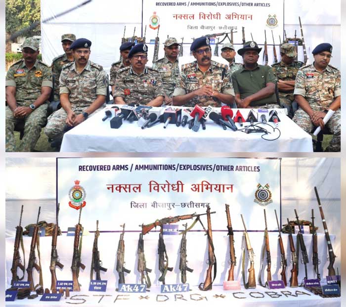 बीजापुर : छत्तीसगढ़ के बीजापुर पश्चिम बस्तर डिवीजन क्षेत्र के थाना भैरमगढ़, जांगला और नैमेड के सरहदी क्षेत्रान्तर्गत पोटेनार व कचीलवार के जंगल क्षेत्र में बुुधवार काे हुई मुठभेड़ में मारे गए सभी 18 नक्सलियों के शव बरामद कर गुरूवार काे बीजापुर जिला मुख्यालय लाया गया। इनमें से अब तक 16 नक्सलियाें की शिनाख्त हाे चुकी है। इन पर एक कराेड़ 30 लाख का इनाम घाेषित था।बस्तर संभाग के आईजी सुंदरराज पी और बीजापुर एसपी डॉ. जितेन्द्र यादव ने आज प्रेसवार्ता में मुठभेड़ से संबंधित जानकारी मीडिया से साझा की। उन्होंने बताया कि मारे गए 18 में से 16 नक्सलियाें की पहचान हाे गई है। इन नक्सलियाें पर कुल 1 करोड़ 30 लाख का इनाम था। इसके साथ ही गंगालूर क्षेत्र से आतंक का पर्याय नक्सली संगठन खत्म हो गया है।बस्तर आईजी ने बताया कि मारे गए 18 में 09 महिला नक्सली शामिल थीं। इसमें 10 लाख का इनामी नक्सली कमांडर वेल्ला भी है। उन्हाेंने बताया कि नक्सलियाें के कंपनी नम्बर 2 और कंपनी नम्बर 7 के नक्सली इस मुठभेड़ में मारे गए हैं। मुठभेड़ स्थल से कुल 19 हथियार बरामद हुए हैं। इनमें एके-47, एलएमजी 303 रायफल और ऑटोमैटिक हथियार शामिल हैं। उन्हाेंने बताया कि पिछले 19 महीनों में अलग-अलग मुठभेड़ में प्रदेश में अब तक कुल 469 नक्सली कैडर मारे गए हैं। उन्होंने नक्सलियों को सख्त चेतावनी देते हुए कहा कि बचे नक्सली जल्द ही आत्मसमर्पण कर दें नहीं तो सुरक्षाबल के जवानों का सामना करना पड़ेगा।बस्तर आईजी सुंदरराज ने बताया कि सरकार, सुरक्षा बलों और बस्तरवासियों की सामूहिक इच्छाशक्ति, वामपंथी उग्रवाद के निर्णायक अंत की दिशा में महत्वपूर्ण भूमिका निभा रही है। नक्सली प्रभाव से दूरस्थ क्षेत्रों को मुक्त कराना, शांति-व्यवस्था को सुदृढ़ करना तथा क्षेत्र में समावेशी और सतत विकास को बढ़ावा देना इन प्रयासों के प्रमुख उद्देश्य हैं। उन्होंने कहा, “हमारा लक्ष्य स्पष्ट है कि एक शांतिपूर्ण और नक्सल-मुक्त बस्तर। मौजूदा परिस्थितियों में माओवादी संगठन पूरी तरह घिर चुका है, और अब उसके पास हिंसा छोड़कर मुख्यधारा में लौटने के अतिरिक्त कोई विकल्प नहीं बचा है।आईजी ने सुरक्षाबलाें की दृढ़ प्रतिबद्धता को दोहराते हुए कहा कि अभियान के दौरान अपने प्राणों की आहुति देने वाले तीनों वीर बलिदानी मोनू बड़दी, दूकरू राम गोंडे और रमेश सोढ़ी की शौर्यगाथा सदैव प्रेरणा देती रहेगी, और बस्तर उनकी सर्वोच्च निष्ठा एवं बलिदान को हमेशा श्रद्धा और सम्मान के साथ स्मरण करेगा।बीजापुर एसपी डॉ. जितेन्द्र यादव ने बताया कि पश्चिम बस्तर डिवीजन क्षेत्र के थाना भैरमगढ़-जांगला-नैमेड के सरहदी क्षेत्रान्तर्गत कचीलवार,पोटेनार के जंगल पहाडों में पीएलजीए कंपनी नम्बर 2 का कमांडर वेल्ला मोड