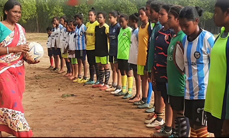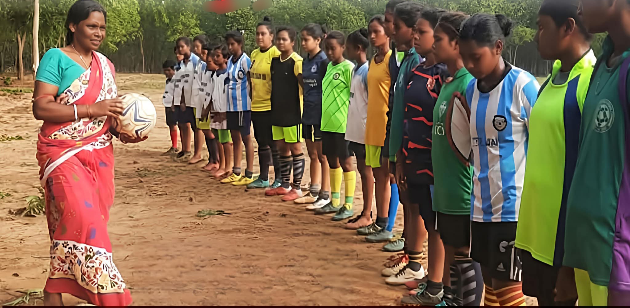 साड़ी में मैदान पर उतरकर फुटबॉल को नई उड़ान दे रही बांकुड़ा की कोच भारती