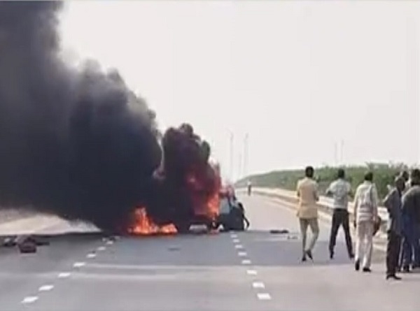 बाराबंकी में पूर्वांचल एक्सप्रेस-वे पर टक्कर के बाद कार में लगी आग, पांच की मौत व छह झुलसे