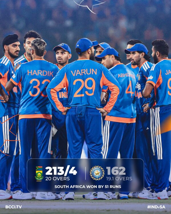 भारत ने पहले टी-20 में साउथ अफ्रीका को कटक में 101 रन से हराया था, और अब दोनों टीमों के बीच सीरीज 1-1 से बराबरी पर है। पांच मुकाबलों की सीरीज का अगला मैच 14 दिसंबर को धर्मशाला में खेला जाएगा, जहां दोनों टीमों के लिए यह मैच सीरीज जीतने की दिशा में अहम होगा।