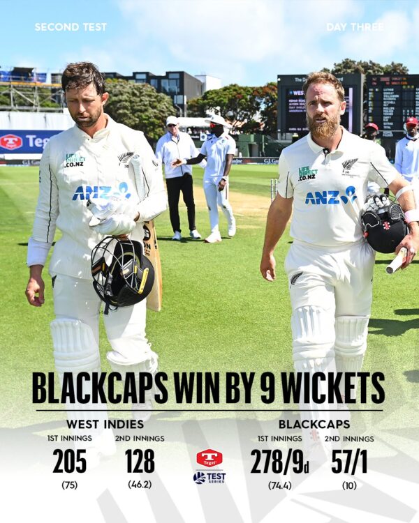 वेलिंगटन में खेले गए दूसरे टेस्ट में वेस्टइंडीज़ पर नौ विकेट की शानदार जीत ने न सिर्फ न्यूजीलैंड को सीरीज में बढ़त दिलाई, बल्कि आईसीसी वर्ल्ड टेस्ट चैंपियनशिप 2025–27 चक्र में उनकी दावेदारी को और मज़बूती से स्थापित भी कर दिया।