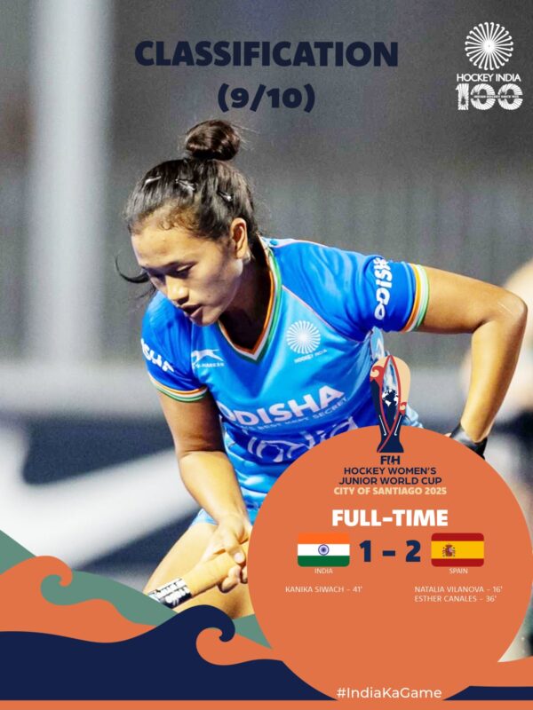 2-1 से स्पेन की जीत, भारतीय महिला टीम जूनियर विश्व कप में 10वें स्थान पर