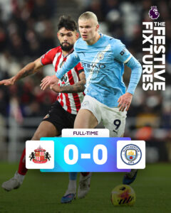 एर्लिंग हालैंड की मौजूदगी के बावजूद मैनचेस्टर सिटी को सुंदरलैंड के खिलाफ अहम मैच गोलरहित ड्रॉ खेला जिससे आर्सेनल ने इंग्लिश प्रीमियर लीग फुटबॉल टूर्नामेंट में चार अंक की बढ़त हासिल कर ली है।