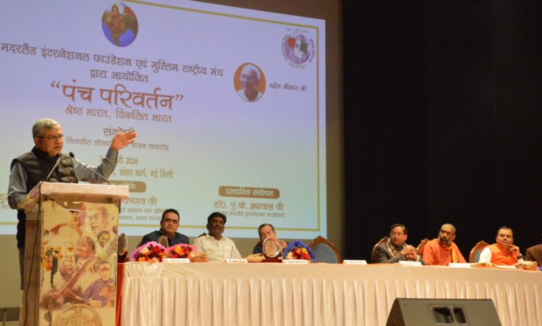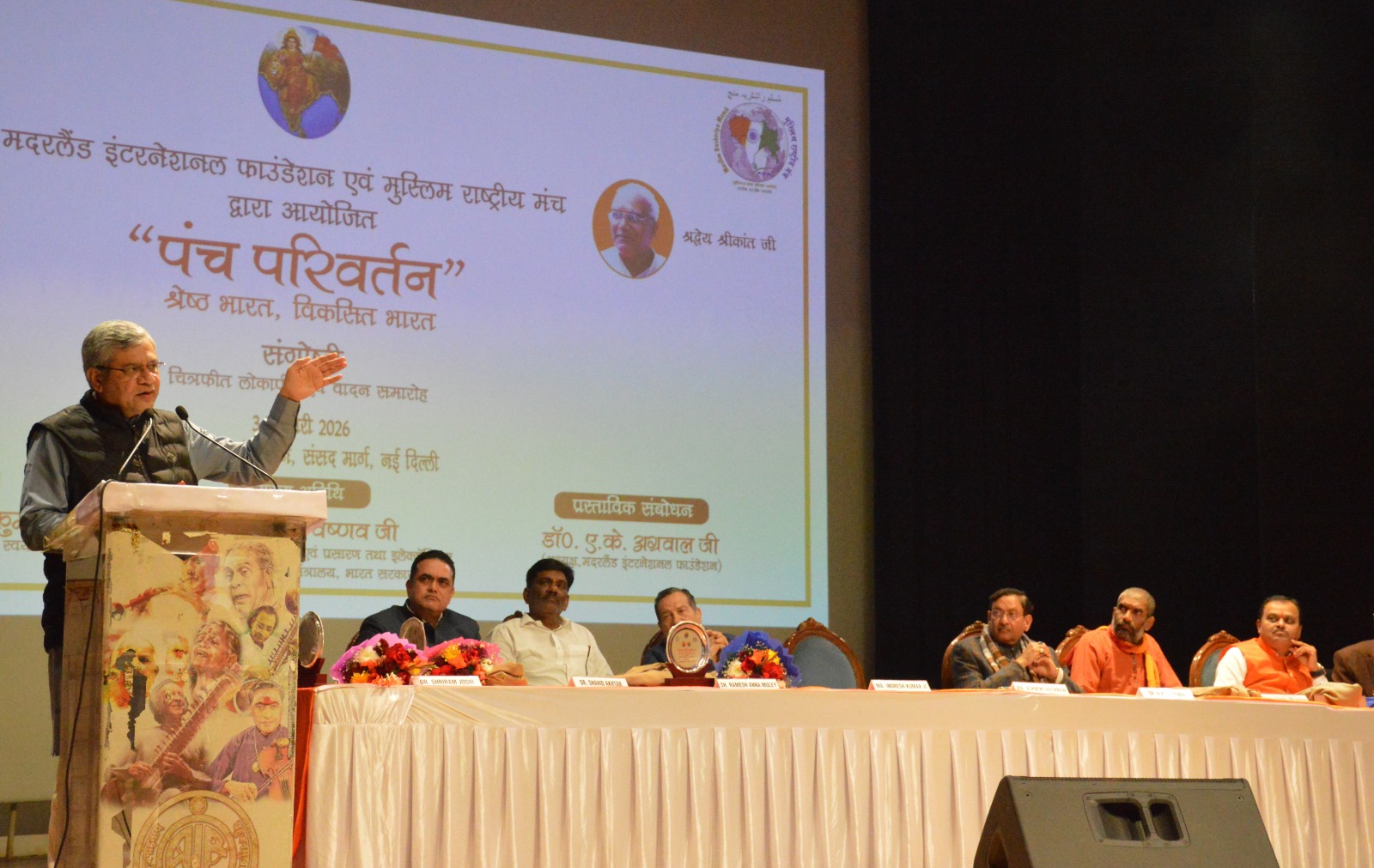 इस अवसर पर आरएसएस के राष्ट्रीय कार्यकारिणी के सदस्य इंद्रेश कुमार ने कहा कि पड़ोसी नहीं बदले जा सकते। लेकिन हम अपनी खोई हुई भूमि की तरफ़ तो जा सकते हैं। जो ख़त्म होना चाहता है उसका उत्तर खोज कर रखना चाहिए। उन्होंने कहा कि पंच परिवर्तन से समाज बदलेगा। किसी भी दूसरे देश में हिम्मत नहीं है जो ख़ुद को विश्व गुरु कहे। सारे जहां से अच्छा हिंदुस्तान हमारा, ऐसा दुनिया में कहीं और सुनाई नहीं देता है।पंच परिवर्तन के नियमों से हम विश्व गुरु बन सकते हैं। उन्होंने कहा कि भारत विभिन्नता में एकता वाला देश है। यही इसकी सुंदरता है। इसलिए दुनिया की एकता का बेमिसाल उदाहरण है भारत। हम जीना जानते है और सबक सिखाना भी जानते हैं।इस अवसर पर मदरलैंडइंटरनेशनलफाउंडेशनकेअध्यक्षडॉ.एकेअग्रवाल ने पंच परिवर्तन संगोष्ठी की प्रस्तावना रखी और सभी से इसका स्मरण करने का आह्वान किया। इसके साथ सुरेश चौहान ने इस विषय पर अपने विचार रखे। मंच का संचालन श्रीराम जोशी ने किया।