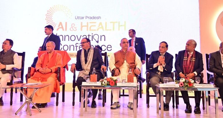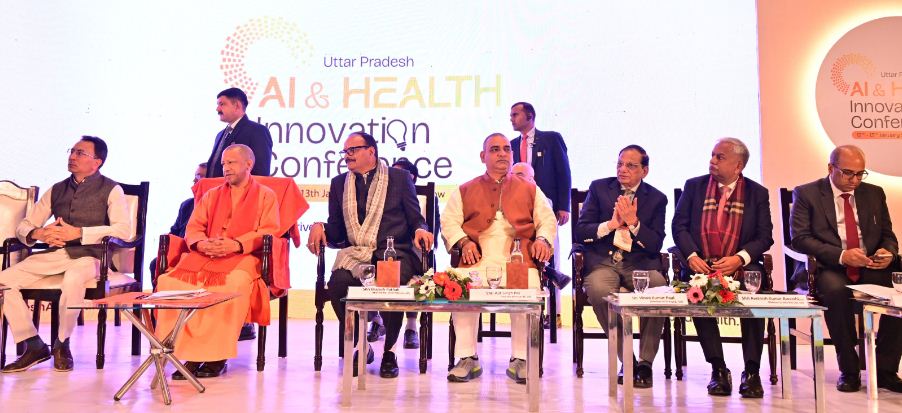 लखनऊ : उत्तर प्रदेश के मुख्यमंत्री योगी आदित्यनाथ और केन्द्रीय मंत्री जितिन प्रसाद के साथ उप मुख्यमंत्री ब्रजेश पाठक और राज्यमंत्री अजीत पाल ने सोमवार को दो दिवसीय उत्तर प्रदेश एआई और स्वास्थ्य नवाचार सम्मेलन’ 2026 का उद्घाटन किया।