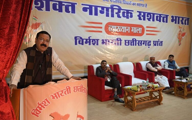 व्याख्यानमाला के मुख्य वक्ता आरएसएस के छत्तीसगढ़ सह प्रांत प्रचारक नारायण नामदेव ने कहा कि वही देश उन्नति करता है, जिस देश के नागरिक सजग और समर्थ होते हैं। आज विचारणीय है कि नागरिक कितने सजग और समर्थ हैं। उन्होंने कहा कि देश पर आक्रांताओं के लगातार आक्रमण के कारण नागरिकों की मानसकिता में परिवर्तन आया, जिससे देश के विकास उन्नति में बाधा पहुंची। हम सब को अपने अपने अंतस में विचार करके आज के नागरिक के आचार विचार, व्यवहार में सकारात्मक परिवर्तन लाना होगा।