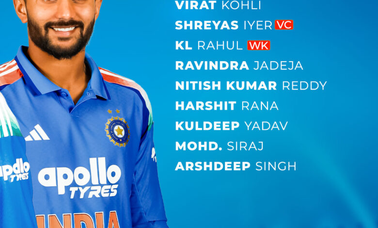 भारतीय टीम एकादश : रोहित शर्मा, शुभमन गिल (कप्तान), विराट कोहली, श्रेयस अय्यर, केएल राहुल (विकेटकीपर), रवींद्र जडेजा, नीतीश कुमार रेड्डी, हर्षित राणा, कुलदीप यादव, मोहम्मद सिराज, अर्शदीप सिंह।