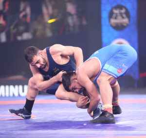 दिल्ली दंगल वॉरियर्स ने 86 किग्रा पुरुष वर्ग में शुरुआती बढ़त बनाई, जहां वफाईपौर हादी बख्तियार ने प्रभावी पार टेरे कुश्ती का प्रदर्शन करते हुए मायखाइलोव वासिल को 7–4 से हराया। पहले पीरियड में बनाई गई बढ़त को उन्होंने अंत तक बनाए रखा।