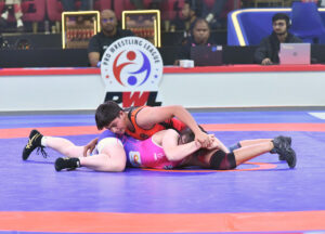 महिलाओं के 57 किग्रा वर्ग में राष्ट्रीय चैंपियन रजनीता जांगड़ा ने बेहतरीन नियंत्रण दिखाया। पहले पीरियड में टेकडाउन से बढ़त बनाई, दूसरे पीरियड में टेकडाउन और टर्न-एक्सपोज़र जोड़ते हुए फॉल हासिल किया और स्कोर 3–3 कर दिया, जिससे मुकाबले की दिशा पूरी तरह बदल गई।
