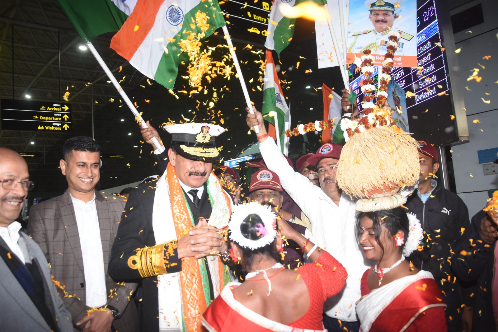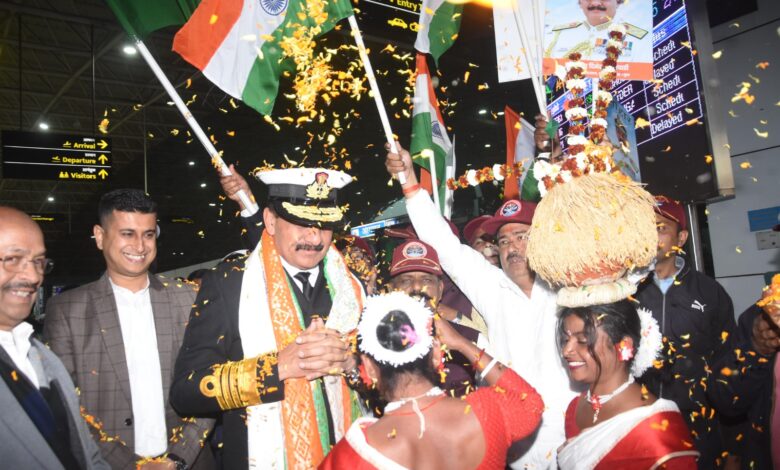 भारतीय नौसेना प्रमुख पहुंचे रांची, एयरपोर्ट पर भव्य स्वागत