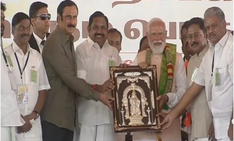इससे पहले प्रधानमंत्री मोदी ने मंच पर मौजूद अन्नाद्रमुक महासचिव एडप्पाड़ी के. पलानीस्वामी (ईपीएस) सहित सभी गठबंधन सहयोगियों का आभार जताया और “भारत माता की जय” के उद्घोष के साथ अपने भाषण की शुरुआत की।