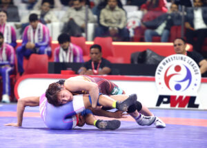 नोएडा : प्रो रेसलिंग लीग 2026 के मैच 11 में रविवार रात नोएडा इंडोर स्टेडियम में हरियाणा थंडर्स ने टाइगर्स ऑफ मुंबई दंगल्स के खिलाफ हरफनमौला और प्रभावशाली प्रदर्शन करते हुए मुकाबले के हाफवेचरण में ही बड़ी बढ़त बना ली।