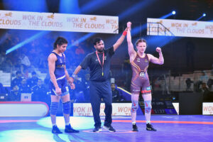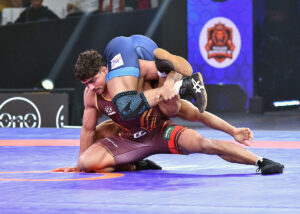 86 किग्रा पुरुष वर्ग में मिखाइलोववासिल ने अशिरोव अशराफ के खिलाफ धैर्यपूर्ण और सटीक प्रदर्शन करते हुए यूपी डोमिनेटर्स को एक बार फिर बराबरी पर ला दिया। अशराफ ने पैसिविटी और टेकडाउन के जरिए शुरुआती बढ़त बनाई थी, लेकिन वासिल ने पावर मिनट में निर्णायक चार अंकों का टेकडाउन लगाकर 5–3 से जीत दर्ज की और स्कोर 3–3 कर दिया।