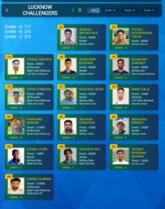 ग्रेड-ए (7) : आकर्ष श्रीवास्तव – गेंदबाज़, पीयूष देवनारायण यादव – विकेटकीपर, प्रिंस मौर्य – ऑलराउंडर (दाएं हाथ के बल्लेबाज़, बाएं हाथ के आर्थोडाक्स), शाश्वत कृष्णा – गेंदबाज़, शुभम चौबे – ऑलराउंडर (दाएं हाथ के बल्लेबाज़), विपिन चंद्रा – ऑलराउंडर (दाएं हाथ के बल्लेबाज़ व गेंदबाज), करन शर्मा – ऑलराउंडर (दाएं हाथ के बल्लेबाज़ व ऑफ स्पिन गेंदबाज),