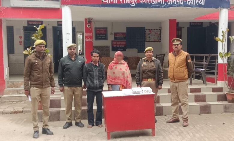 थाना रामपुर कारखाना पर पंजीकृत मुकदमा से संबंधित अभियुक्त राकेश पुत्र स्व0 बिल्लू प्रसाद निवासी वार्ड नं0 01 थाना रामपुर कारखाना जनपद देवरिया, प्रकाश में आयी अभियुक्ता लीलावती पत्नी उमेश निवासी वार्ड नं0 01 थाना रामपुर कारखाना जनपद देवरिया तथा 01 बाल अपचारी को मुखबिर की सूचना पर डूमरी तिराहे के पास से गिरफ्तार किया गया।