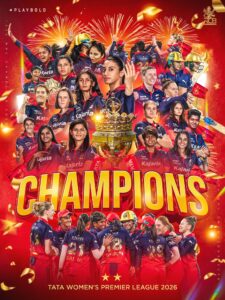 वडोदरा के कोटाम्बी स्टेडियम में हुए विमेंस प्रीमियर लीग के हाई-वोल्टेज फाइनल में रॉयल चैलेंजर्स बेंगलुरु ने दिल्ली कैपिटल्स को 6 विकेट से हराकर दूसरी बार खिताब जीता। आरसीबी ने 204 रनों के विशाल लक्ष्य को महज 19.4 ओवर में हासिल करते हुए दर्शकों को रोमांच का एहसास कराया।