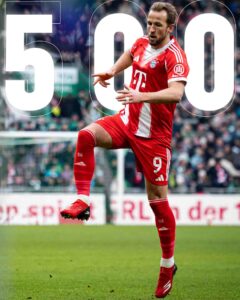 शनिवार को इंग्लैंड के स्टार फुटबॉलर हैरी केन ने बायर्न म्यूनिख से दो गोल करके अपने देश और विभिन्न क्लबों से 500 गोल करने की उपलब्धि हासिल की। केन ने अपने दो गोल में से एक गोल पेनल्टी पर किया। यह पेनल्टी पर किया गया उनका 100वां था।