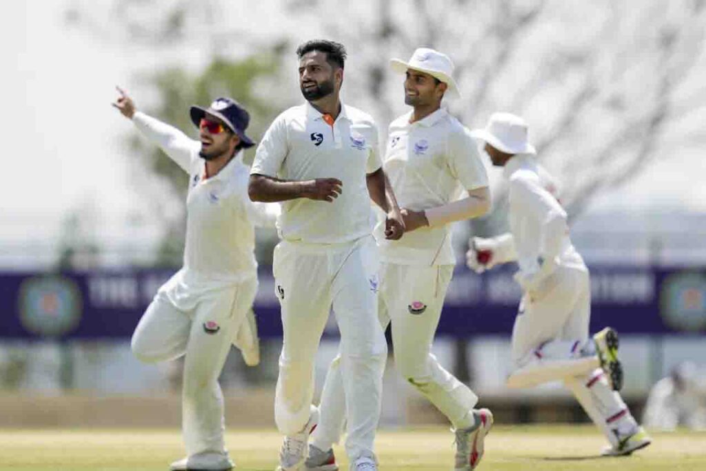 नबी ने जम्मू-कश्मीर के लिए बेहतरीन प्रदर्शन करते हुए 14 ओवर में 32 रन देकर तीन विकेट चटकाए। जम्मू कश्मीर ने शुभम पुंडीर के 121 रन से अपने पहले रणजी फाइनल में पहली पारी में 584 रन का बड़ा स्कोर बनाया था।