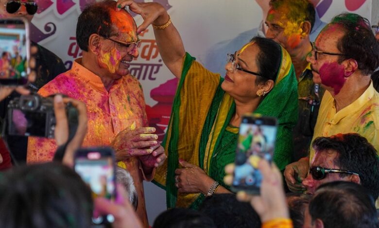 राजधानी भोपाल में मुख्यमंत्री डॉ. मोहन यादव ने अपने निवास पर नागरिकों के साथ फूलों और गुलाल से होली खेली। वहीं, केंद्रीय मंत्री शिवराज सिंह चौहान ने फाग गया। स्वास्थ्य मंत्री राजेंद्र शुक्ला ने रीवा में टिमकी और ढोलक की थाप पर फाग गाकर पारंपरिक होली मनाई। उज्जैन में संतों ने फूलों और गुलाल से होली खेली। वहीं सांसद अनिल फिरोजिया ‘भीगे चुनर वाली’ गीत पर झूमते नजर आए। रतलाम में मेयर प्रहलाद पटेल ने ‘लैला ओ लैला’ गीत पर डांस किया। वहीं सागर में विधायक शैलेंद्र जैन ने पत्नी के साथ ‘चल छैया छैया’ पर थिरक कर कार्यकर्ताओं के बीच उत्साह भर दिया।