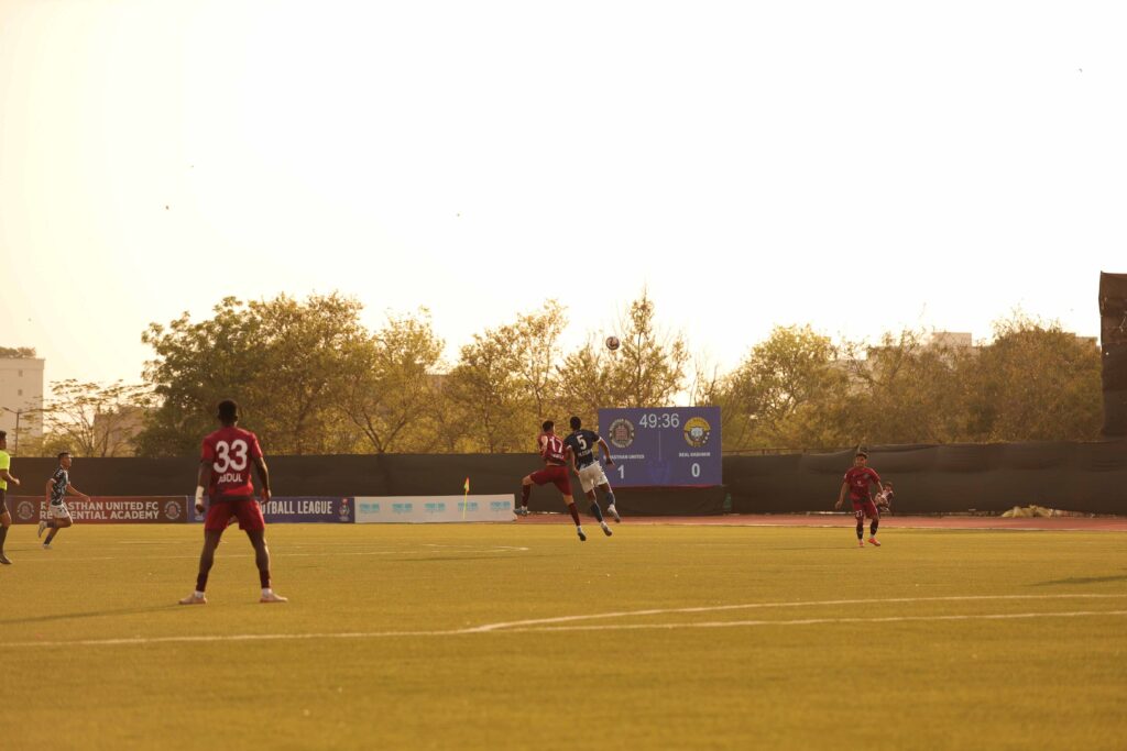 संख्या में कमी के बावजूद रियल कश्मीर ने आक्रामक रुख बनाए रखा, जबकि राजस्थान ने सब्स्टीट्यूट खिलाड़ियों के जरिए बढ़त का फायदा उठाने की कोशिश की। अंतिम चरण में दोनों टीमों को आधे-अधूरे मौके मिले, लेकिन कोई भी टीम फिनिशिंग टच नहीं दे सकी।