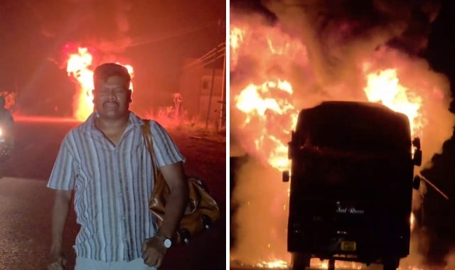 यह घटना रामभद्रपुरम मंडल के तारापुरम के पास तड़के करीब 3:00 बजे हुई। जानकारी के अनुसार, ‘ओडिशा ट्रेवल्स’ की बस भुवनेश्वर से मलकानगिरी (ओडिशा) जा रही थी। इसी दौरान बस का पिछला टायर अचानक फट गया, जिससे निकली चिंगारी ने कुछ ही पलों में पूरी बस को आग की चपेट में ले लिया।