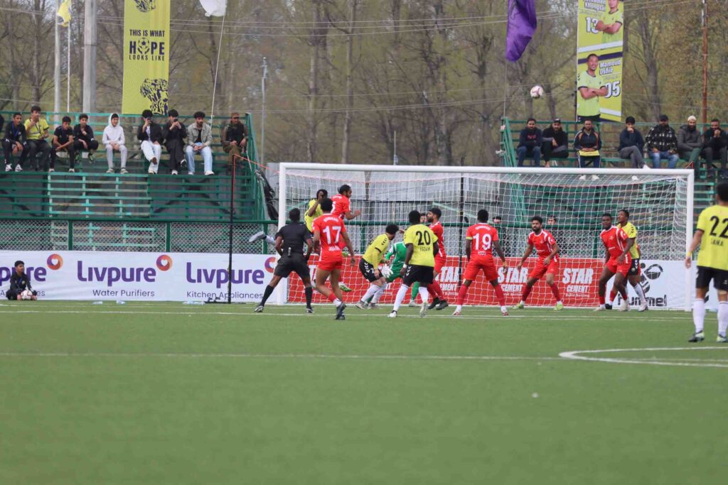 मैच की शुरुआत में दोनों टीमें मिडफील्ड में पकड़ बनाने के लिए संघर्ष करती नजर आईं, जिससे बार-बार गेंद का कब्जा बदलता रहा। सेट-पीस दोनों टीमों के लिए सबसे बड़ा हथियार साबित हुए। रियल कश्मीर ने लंबे थ्रो-इन पर भरोसा किया, जबकि नामधारी ने फ्री-किक और कॉर्नर के जरिए मौके बनाने की कोशिश की।