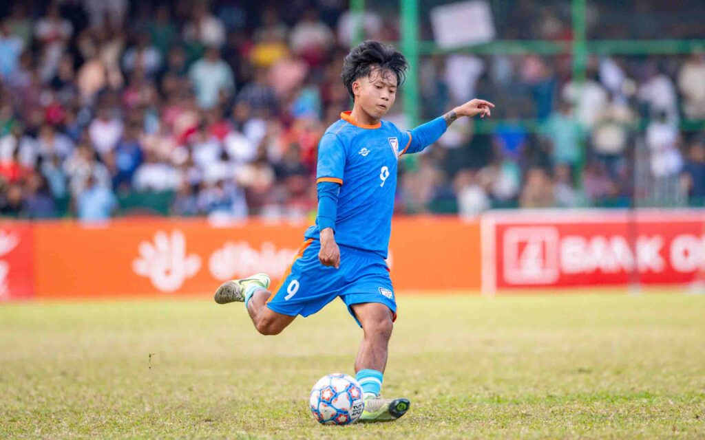 17वें मिनट में भारत को बढ़त मिली। ओमांग डोडुम के कॉर्नर पर विशाल यादव ने डिफेंडरों के बीच जगह बनाकर सटीक हेडर के जरिए गेंद को गोल में पहुंचाया। यह टूर्नामेंट में उनका दूसरा गोल था।