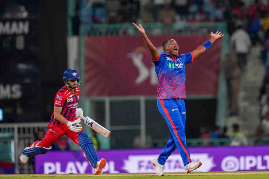 आयुष बदोनी बिना खाता खोले आउट हो गए, जबकि निकोलस पूरन (8) को एनगिडी ने बोल्ड कर दिया। इसके बाद मार्श भी कुलदीप यादव की गेंद पर आउट हो गए और टीम का स्कोर 71 रन पर पांच विकेट हो गया।
