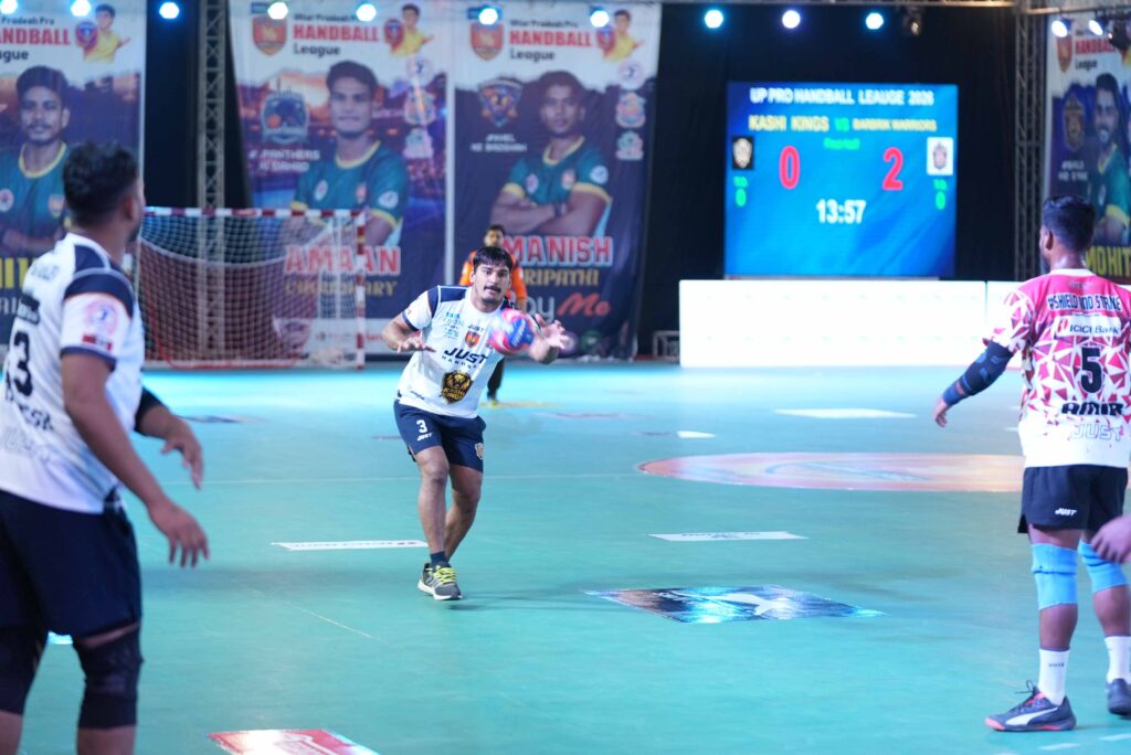 लखनऊ। रफ्तार और रोमांच से भरी ‘यूपी प्रो हैंडबॉल लीग’ के दूसरे दिन कोर्ट पर टीमों के बीच रोमांचक भिड़ंत देखने को मिली। एक तरफ काशी किंग्स ने पिछड़ने के बाद वापसी करते हुए अंतिम क्षणों तक चले सांस रोक देने वाले मुकाबले में बर्बरीक वारियर्स को 19-18 से हराकर अपनी लगातार दूसरी जीत दर्ज की।