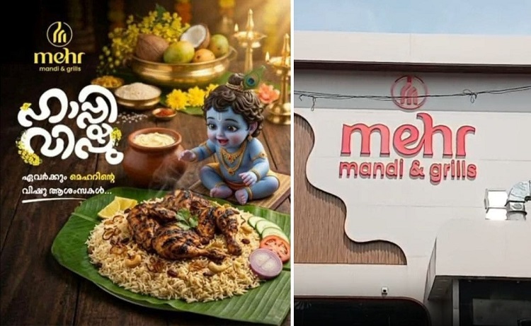यह पूरा विवाद केरल स्थित ‘मेहर मंडी एंड ग्रिल्स’ (Meher Mandi & Grills) नामक रेस्टोरेंट के एक प्रमोशनल विज्ञापन से शुरू हुआ। विशु के पावन अवसर पर रेस्टोरेंट ने जो घोषणा की, उसमें भगवान कृष्ण के बाल रूप (बाल कृष्ण) को एक केले के पत्ते पर परोसी गई चिकन बिरयानी और अन्य व्यंजनों के ठीक बगल में बैठे हुए ग्राफिक के जरिए दर्शाया गया है।