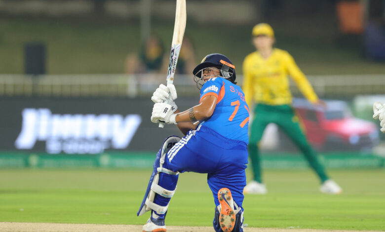 भारतीय टीम इस समय दक्षिण अफ्रीका के दौरे पर है, जहां वह पांच मैचों की टी-20 सीरीज खेल रही है। पहला मैच जीतकर मेजबान टीम सीरीज में 1-0 से आगे है। दोनों टीमों के बीच रविवार को सीरीज का दूसरा मैच खेला जा रहा है। इस मुकाबले में टॉस जीतकर दक्षिण अफ्रीका महिला टीम ने गेंदबाजी का निर्णय लिया। भारतीय टीम पहले बल्लेबाजी के लिए आई। टीम की सलामी शेफाली वर्मा जैसे ही मैदान पर कदम रखा, उन्होंने 100 टी20 अंतरराष्ट्रीय मैच खेलने की उपलब्धि हासिल कर ली।