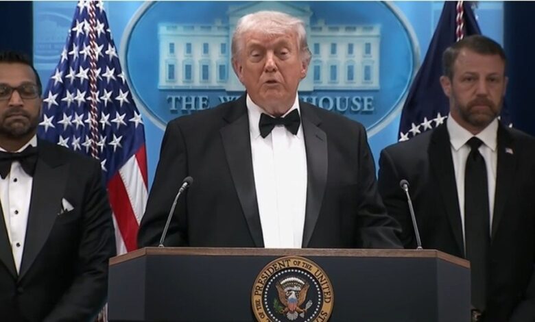 व्हाइट हाउस के ब्रीफिंग रूम में ट्रंप के संवाददाता सम्मेलन में हिस्सा लेने के लिए कई पत्रकार तो सीधे हिल्टन होटल से पहुंचे। ट्रंप ने संवाददाता सम्मेलन से पहले संदिग्ध की तस्वीरें और वीडियो ‘ट्रुथ सोशल’ पर पोस्ट किए। ट्रंप ने इस घटना को कार्यक्रम के मूल उद्देश्य पर सीधा हमला भी बताया। उन्होंने कहा, “यह कार्यक्रम अभिव्यक्ति की स्वतंत्रता को समर्पित था। इसका मकसद दोनों पार्टियों के सदस्यों और प्रेस के सदस्यों को एक साथ लाना था।