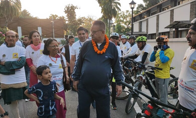 उत्तराखंड में देश की पहली मिलेट क्रांति साइकिल रैली पर पुष्प वर्षा