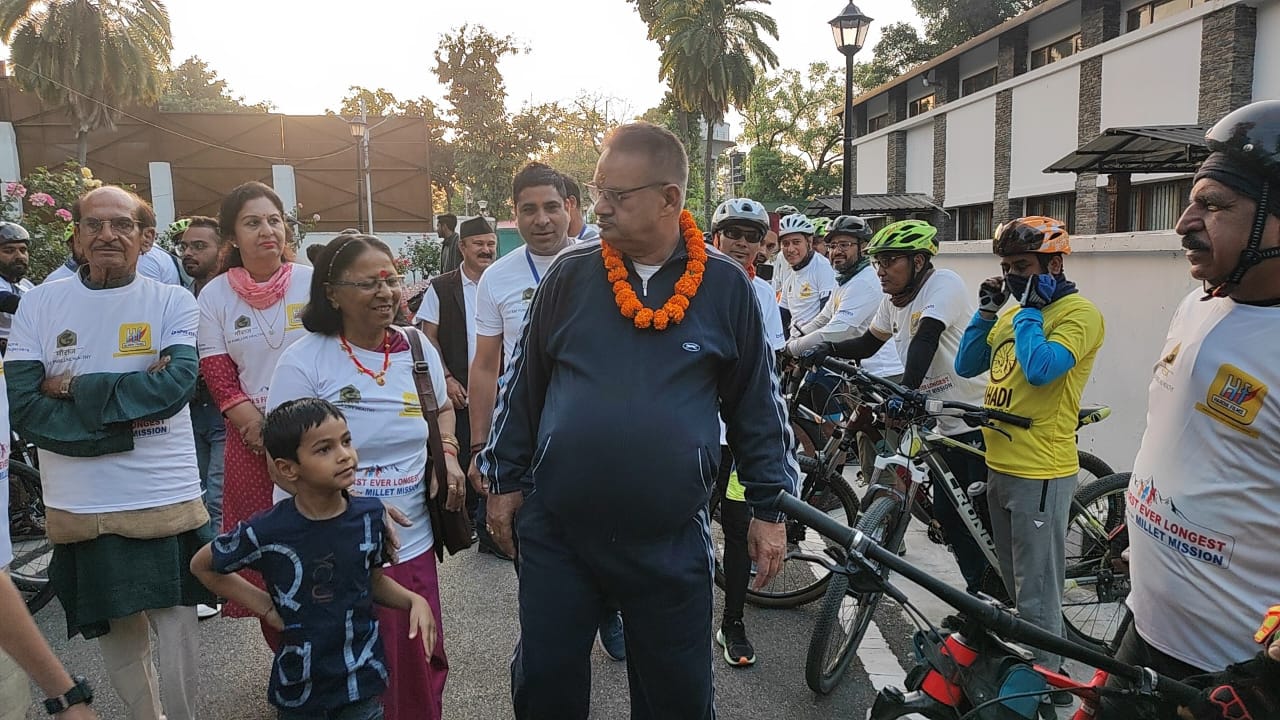 देहरादून। प्रदेश के कृषि मंत्री गणेश जोशी और औली राष्ट्रीय मैराथन की रजत पदक विजेता धावक अंजली चौहान ने आज (शुक्रवार) सुबह गढ़ी कैंट स्थित मुख्यमंत्री आवास से मशाल जलाकर देश की तीन दिवसीय पहली “मिलेट क्रांति साइकिल रैली” को रवाना किया। यह रैली चमोली के दूरस्थ गांव मुदोली तक (300 किलोमीटर) जाएगी। हर्रावाला क्षेत्र में सामाजिक कार्यकर्ता नरेंद्र सिंह चौधरी के नेतृत्व में स्थानीय नागरिकों ने पुष्प वर्षा कर रैली का स्वागत किया।