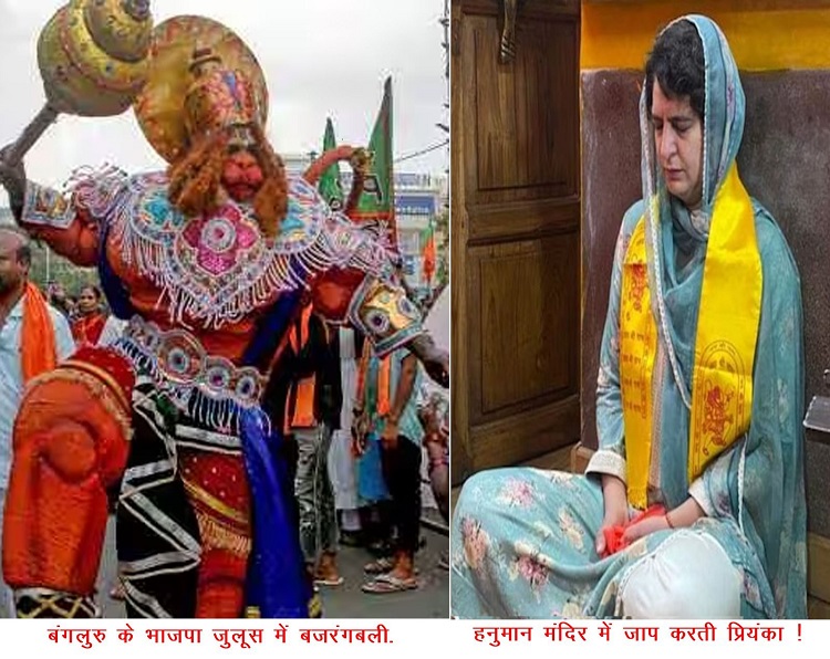 सर्वाधिक विलक्षण वाकया हुआ था गत शनिवार (6 मई 2023) कर्नाटक के मतदान में। तब दोनों प्रतिद्वंदी पार्टियों ने एक ही ईश्वर की स्तुति की थी। सत्ता दिलाने का वर मांगा था। अंजनिपुत्र से उनका अनुनय था कि क्लेश-विकार-पीड़ा हर लें। संकट मोचन करा दें। मगर सोनिया-कांग्रेस तो पूरी तरह “बजरंग” शब्द से ही दूर रही। बजरंग मतलब केसर, जो भाजपा का वर्ण है। अतः कांग्रेसियों ने भारी जबड़ाधारी हनुमान का सूत्र उच्चारा। तो पवनपुत्र असमंजस में पड़ गए। द्वापर में कृष्ण बच गए थे जब दुर्योधन और अर्जुन एक साथ द्वारका पहुंच गए थे, क्योंकि उन दोनों की चाह भिन्न थी। बेंगलुरु में तो दोनों का बस एक तकाजा ही था। विधान सौधा पर कब्जा ! अतिविश्वास में भाजपाई कोताही कर बैठे। वंदन-पूजन बिसरा बैठे। तभी प्रियंका जाखू शिला (शिमला) पर हनुमान मंदिर जा पहुंची। तप करने लगी। (चित्र देखें।) अब कंचन वर्णवाले, कानन-कुंडलधारी, हाथ में वज्र, कांधे पर मूंज के जनेऊधारी, केसरीनंदन ने ध्यानमग्न भक्तिन को अपने समीपस्थ पाया। अनुकंपा कर दी। बंगलुरु में केसरिया लोग लटक गये। नतीजन बजरंगबली का न दल काम आया, न बाण चल पाया।