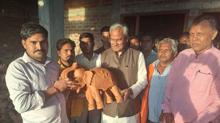 मोदी सरकार के 9 वर्ष का सफल कार्यकाल पूर्ण होने के उपलक्ष्य में भाजपा द्वारा चलाए जा रहेजनसंपर्क महाभियान के सिलसिले में उत्तराखंड के पूर्व सीएम त्रिवेंद्र सिंह रावत को बांसगांव समेत पांच लोकसभा क्षेत्रों की जिम्मेदारी दी गई। इस निमित्त गोरखपुर आए श्री रावत शनिवार शाम गोरखपुर की ओडीओपी (एक जिला एक उत्पाद) योजना में शामिल टेराकोटा की खूबियां जानने शिल्पकारों के गांव पहुंचे। वह सबसे पहले लंगड़ी गुलरिहा गांव में टेराकोटा शिल्पकार राजन प्रजापति के वर्कशेड पर पहुंचे। उन्होंने वर्कशेड में रखे टेराकोटा के तैयार व बन रहे उत्पादों को देखा और शिल्पकार से कई जानकारियां लीं। श्री रावत ने पूछा कि ओडीओपी में शामिल होने से टेराकोटा के क्षेत्र में क्या अंतर आया है? राजन प्रजापति ने उन्हें बताया कि सरकार की तरफ से इलेक्ट्रिक चाक, पगमिल आदि मिलने से काम काफी आसान हो गया हैम उत्पादन में कई गुना वृद्धि हुई है। रही बात बाजार की तो जब हमारे मुख्यमंत्री योगी आदित्यनाथ लगातार कई मंचों से टेराकोटा की खुद ब्रांडिंग करते रहते हैं तो बाजार बढ़ना ही है। टेराकोटा शिल्पकारों के पास इतना काम है कि वे कोरोना काल में भी खाली हाथ नहीं बैठे थे। यह सीएम योगी की ही पहल है कि जो बैंक लोन देने में कतराते थे, आज वह घर आकर वित्तपोषण करते हैं।