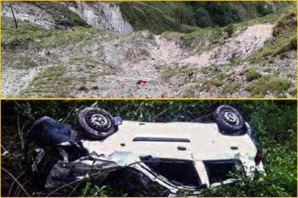 बताया गया है कि सड़क पर कटाव होने के कारण कार ज्यादा किनारे चली गई। इसी दौरान हादसा हो गया। कार करीब 600 मीटर गहरी खाई में गिरी है। हादसे की सूचना मिलते ही लोग रेस्क्यू के लिए दौड़ पड़े। प्रत्यक्षदर्शी ने बताया कि जगह-जगह कार सवार यात्रियों के शव पड़े हैं।