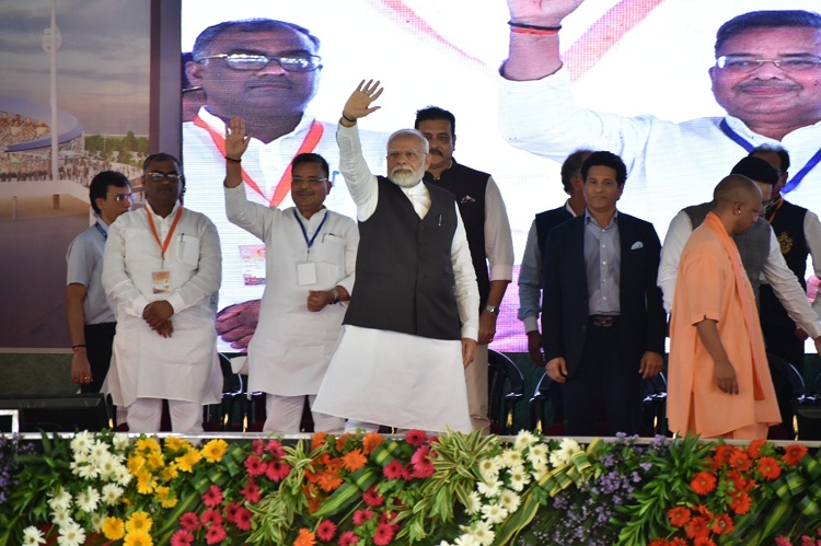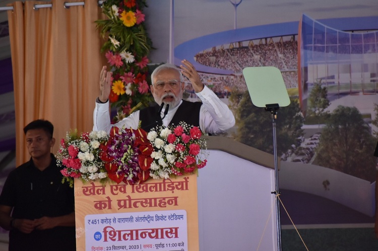 प्रधानमंत्री ने कहा कि आज वह ऐसे दिन काशी आए हैं, जब चंद्रमा के शिव शक्ति प्वाइंट पर पहुंचने का भारत का एक माह पूरा हो रहा है। शिव शक्ति यानी वो स्थान जहां हमारा चंद्रयान आज ही के दिन लैंड हुआ था। गंजारी का यह स्थान माता विंध्यवासिनी के धाम और काशी नगरी को जोड़ने के बीच एक पड़ाव है। यहां से कुछ दूर पर भारतीय लोकतंत्र के प्रखर पुरुष और पूर्व केंद्रीय मंत्री राजनारायण जी का गांव मोतीकोट है। उन्होंने कहा कि वो इस धरती से राजनारायण जी और उनकी जन्मभूमि को सिर झुकाकर प्रणाम करते हैं। आज काशी में इंटरनेशनल क्रिकेट स्टेडियम की आधारशिला रखी गयी है। ये ना सिर्फ वाराणसी बल्कि पूर्वांचल के युवाओं के लिए एक वरदान साबित होगा। महादेव की नगरी में ये स्टेडियम और उसकी डिजाइन स्वयं महादेव को ही समर्पित है। इसमें क्रिकेट के एक से बढ़कर एक मैच होंगे। यहां खिलाड़ियों को अंतरराष्ट्रीय मैचों की ट्रेनिग का लाभ मिलेगा। आने वाले दिनों में क्रिकेट मैचों की संख्या भी बढ़ने जा रही है। जब क्रिकेट मैच बढ़ेंगे तो नये नये स्टेडियम की जरूरत बढ़ेगी। बनारस का ये स्टेडियम इस डिमांड को पूरा करेगा। पूरे पूर्वांचल का ये चमकता हुआ सितारा बनेगा।