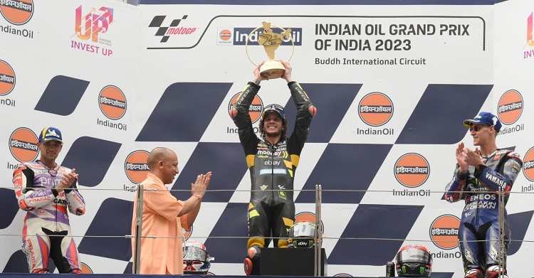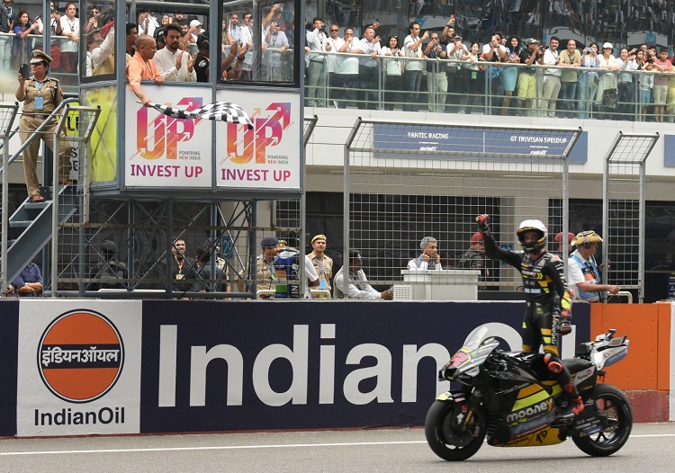 मोटो जीपी की मुख्य रेस 21 लैप में पूरी हुई। हर लैप्स में ड्राइवर्स के बीच रोमांचक मुकाबला देखने को मिला। शनिवार को क्वालीफाइंग के दौरान शीर्ष स्थान हासिल करने वाले मार्को बेजेची ने बुद्ध इंटरनेशनल सर्किट में विजेता होने का गौरव जसिलंक। उनके बाद प्रामैक के जॉर्ज मार्टिन दूसरे स्थान पर रहे, जिन्होंने शनिवार को स्प्रिंट रेस जीती थी। वहीं फेबियो क्वार्टारो ने चौंकाते हुए यामाहा को पोडियम तक पहुंचा दिया। हालांकि, चैंपियनशिप लीडर पेको बागनिया भारत ग्रां प्री से बाहर हो गए। यह इटैलियन राइडर टर्न 5 पर फिसल गया था।