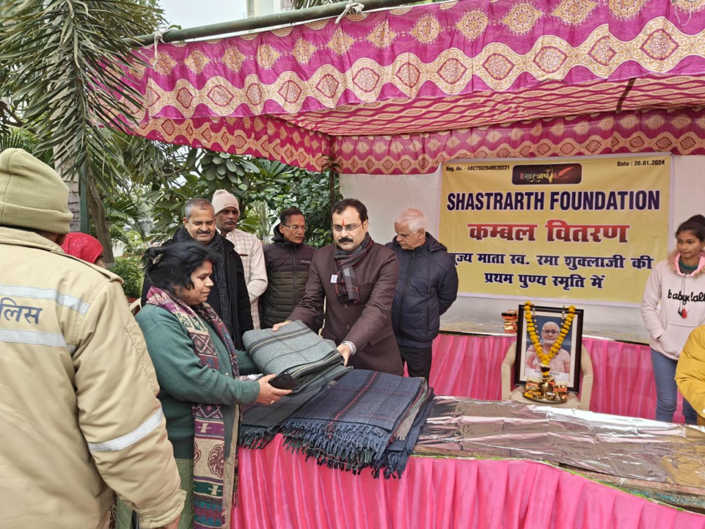 लखनऊ। भारतीय जनता पार्टी (भाजपा) के प्रदेश प्रवक्ता मनीष शुक्ला की माता स्व. रमा शुक्ला की पहली पुण्यतिथि पर शास्त्रार्थ फाउंडेशन की ओर से शनिवार को यहां गोमतीनगर विस्तार में बड़ी संख्या में गरीबों को कम्बल वितरित किया गया।
