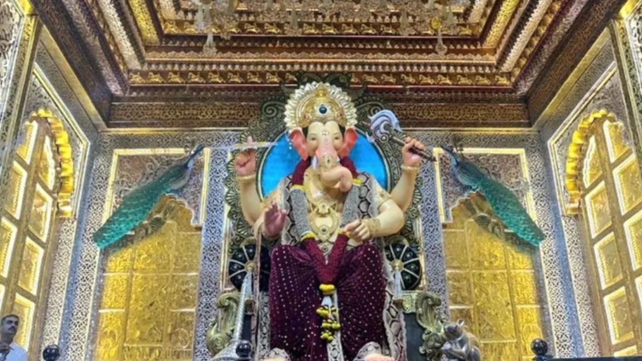 गणेश उत्सव का महापर्व देशभर में बड़े धूमधाम से मनाया जा रहा है. वहीं, इस बार मुंबई के प्रसिद्ध लालबाग के राजा गणपति भव्य रूप में नजर आ रहे हैं. मूर्ति के पर्दा हटाने के साथ ही भक्तों को बप्पा की नई और आकर्षक पोशाक देखने को मिली है. इस बार बप्पा मरून रंग की पोशाक में दिख रहे हैं और उनके सिर पर सोने का मुकुट सुशोभित है. मिली जानकारी के अनुसार, यह मुकुट रिलायंस फाउंडेशन द्वारा अर्पित किया गया है, जिसका वजन 20 किलो हैं और इसकी लागत 16 करोड़ रुपये आई है. मुकुट में हीरे और अन्य कीमती पत्थर भी जड़े गए हैं. हर साल अंबानी परिवार इस पंडाल को करोड़ों का चढ़ावा अर्पित करता है.