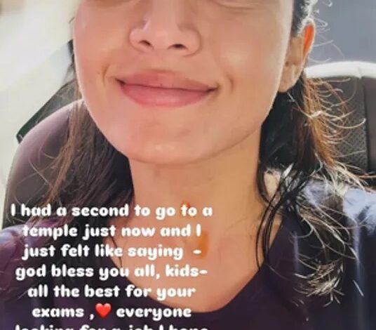 उन्होंने पोस्ट पर लिखा, “मुझे मंदिर जाने का मौका मिला और मुझे बस यही कहने का मन हुआ कि भगवान आप सभी का भला करे, बच्चों को उनकी परीक्षाओं के लिए शुभकामनाएं, नौकरी की तलाश कर रहे सभी लोगों के लिए मैं प्रार्थना करती हूं कि आपको वह मिले जिसकी आप तलाश कर रहे हैं, मैं उम्मीद करती हूं कि आपके सभी दिन प्यार, खुशी और आनंद से भरे हों, ढेर सारा प्यार।