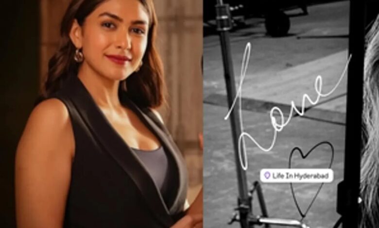 अभिनेत्री मृणाल ने इंस्टाग्राम स्टोरीज पर एक मोनोक्रोमैटिक तस्वीर शेयर की है। शेयर की गई यह तस्वीर किसी फिल्म के सेट की लग रही है। तस्वीर पर अभिनेत्री ने “लाइफ इन हैदराबाद जिओटैग के साथ कैप्शन दिया प्यार।