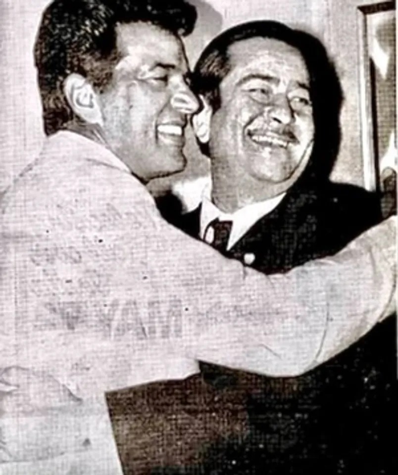 साझा की गई ब्लैक एंड व्हाइट तस्वीर में धर्मेंद्र और राज कपूर एक-दूजे को गले लगाते और मुस्कुराते दिख रहे हैं।
