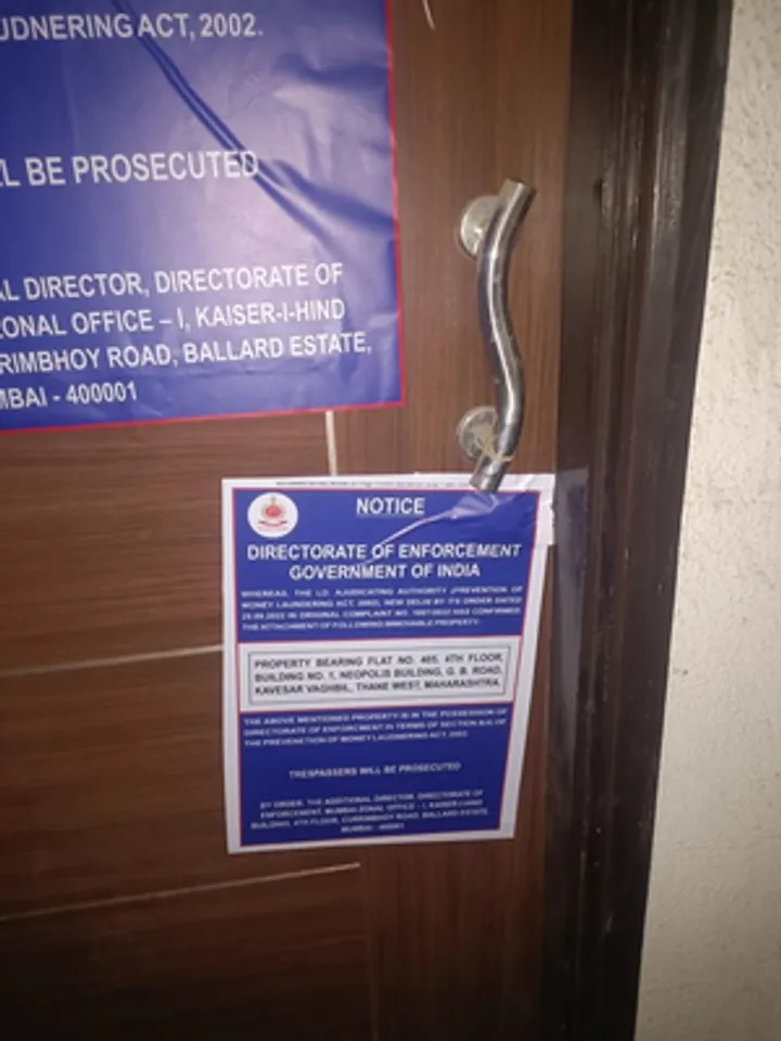 प्रवर्तन निदेशालय (ईडी) ने ठाणे स्थित इकबाल कासकर के एक फ्लैट को अपने कब्जे में लेकर उसे सीज कर दिया है। कावेसर के नियोपोलिस टावर में स्थित यह फ्लैट मार्च 2022 से अस्थायी कुर्की के तहत है।