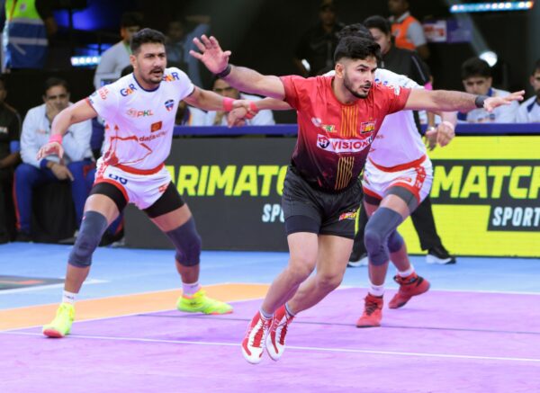 लकी ने हालांकि मल्टीप्वाइंटर के जरिए स्कोर 22-25 कर दिया लेकिन फिर बुल्स आलआउट हो गए। यूपी को 29-23 की लीड मिल गई, जिसे उसने 30 मिनट की समाप्ति तक 30-23 कर दिया। बुल्स ने हालांकि इसके बाद लगातार चार अंक लेते हुए स्कोर 27-30 कर दिया। इस बीच सुशील ने सुपर-10 पूरा किया।