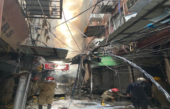 दिल्ली में गफ्फार मार्केट के जूता बाजार में भीषण आग